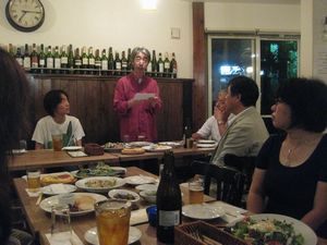 会場は由布院町花の木商店街のイタリアンレストラン・「バルジュン」 加藤昌邦さんのお話から始まりました。 「この第35回を持って、一応、区切りとしたい、そして、「樂友協会」は残して、次のことを考えよう」 |