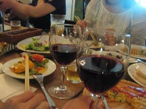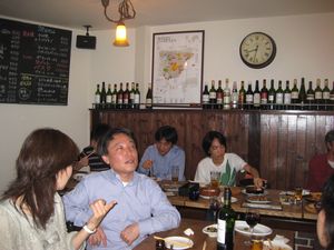 今日、来れなかったひろのぶさんからの差し入れの赤ワインでまた乾杯です。いつも一緒にスタッフとして楽しく働いた久保田さん。ロビーのお花をいつも美しく生けてくださっていました。 |