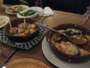 いずれのお料理も赤ワインにとってもよく合います。右下はスペインオムレツ、 |