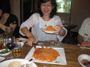 スパゲッティナポリタンをサーブしてくれているみっちゃんです。いつも笑顔が素敵です。 |