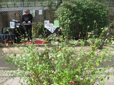 |  | 11日 11月のシルバーウィーク、昨日も花公園でパンを焼きました。 今日も花公園でお仕事です。 パンの仕込みの間に、グリーンカフェにやってきました。 この中では、休日にはいつもこの時間、久住在住のカナダ人のディクソン ハウスさんの 演奏会が開かれています。 |