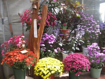 |  | グリーンハウスの一角には、 クリセンサマム(菊)の色々が置いてありました。