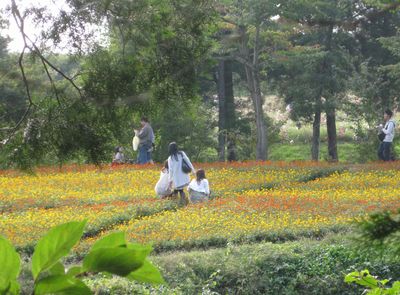 | 黄色のコスモスガーデンは家族連れの撮影場になっています。 |  |