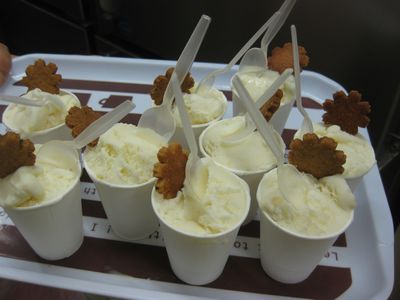 |  | とにかく今日も昨日に輪をかけて忙しかったです。社長からの差し入れです。かわいいジェラード「栗風味秋のジェラード」として大好評かわいいコスモスクッキーが添えられています。ジェラードには、栗が入っています。ああ、生き返りました! |
