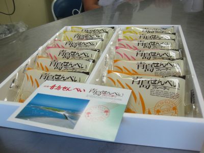 | そして、今日は宮崎のお菓子の差し入れ宮崎県青島海岸のおみやげです。宮崎のフルーツパパイヤ、日向夏、いちごの味の