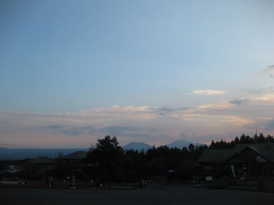 |  | その後、チーフからは「今日のポタージュ」の試食を兼ねての慰労、 パンプキンときのこたっぷり秋のポタージュです。あったかいポタージュをたくさん頂いて今日の疲れも飛びました。ああ、写真を写すのを忘れました・・・・そしてお客様で一杯の花公園を後にしました。まだまだ駐車場はお客様の車が一杯並んでいました。夕焼けに寝釈迦像がクッキリです。 |