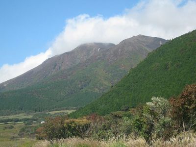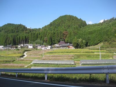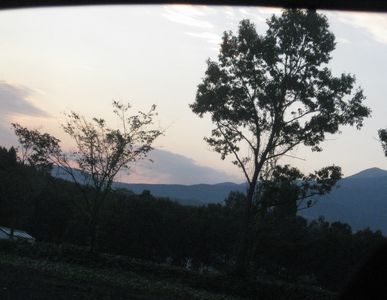 | 先週は感じなかったのに、今朝は、あれっと思いました。山肌の半分上が茶色になってます。落葉樹が枯れたのでしょう・・・山は一日一日、冬支度です。 |  |