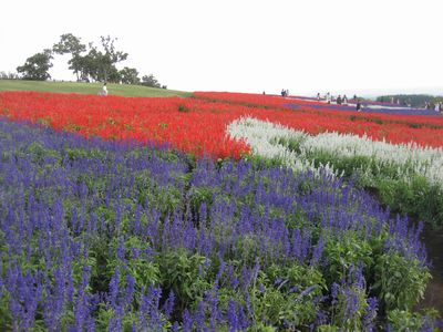 |  | 真っ赤なサルビア、紫のサルビア、その中を和らげている真っ白のサルビア。 |