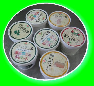 | 今日の差し入れはくじゅう花公園ジェラートいろいろ黄色はくじゅうのミルク、赤はいちご、緑は抹茶、季節限定はミント、私はミント味を頂きました。点々とミントが入っていて本当においしかった~~ |  |
