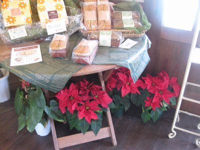| 売店のコーナーには、真っ赤なポインセチアも飾られていて、まもなくのクリスマスシーズンを連想させます。 |  |
