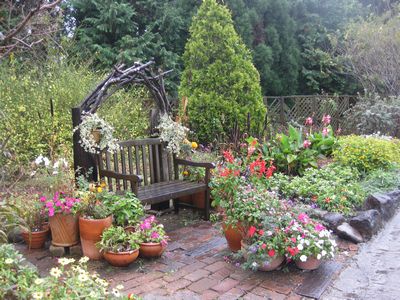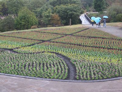 | 花公園のカサをさしたお客様が散策されています。 |  |