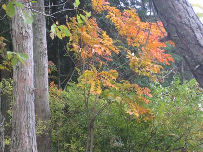 |  | 林の中の木々が美しく紅葉し始めています。 |