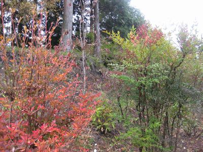 | どうだんも真っ赤、南天の実も赤く染まりかけています。 |  |