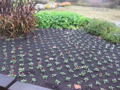| 整然と並んだビオラ、ああ、わが家も早く植えなくては。 |  |