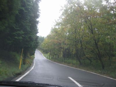 |  | 今日は少し早く仕事が上がりました。雨でけぶる道、木々が黄葉を始めていて、とても美しいです。雨のため、もう夕方のような雰囲気、ライトをつけて帰宅しました。 |