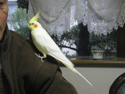 | 友達のご主人が迎えに来てくださって、お家に行きました。とても素敵な家でした。ご主人の肩に留まっているのは、可愛がっているインコ(これってオウムの一種なんですって)名前はオカメインコ(ほっぺの紅がおかめに似てる・・・)からですって。とってもよくなついています。 久しぶりにお会いして、たくさんお話をしました。もっとお話していたかったですが、遅くなるので、宮崎駅に送っていただきました。お世話になりました。ありがとうございました。 |
