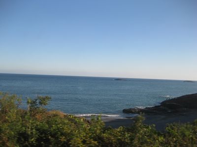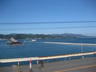 |  やがて海が見えてきました。久しぶりのJR日豊線下りです。ずっと窓の外を眺めていました。 |