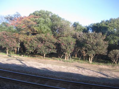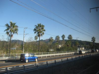 |  やがて、宮崎県らしい風景になりました。JRと並行して走る国道10号線の街路樹が宮崎らしいな~と思わせます。 |