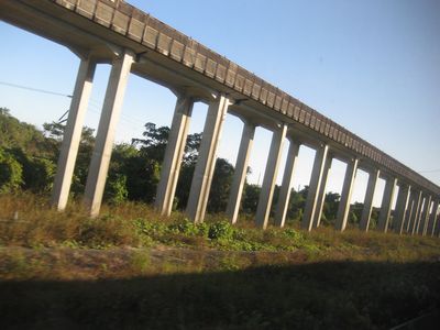 |  日向灘の海岸線に沿って、モノレールの試運転場が今も放置されたままになっています。その昔、モノレールの高速実験が行われていました。 |