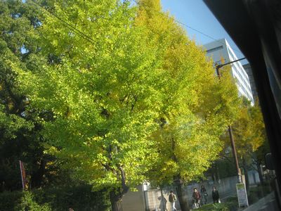 |  こちらは、昭和通りの銀杏並木です、黄金色に輝いています。 |