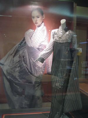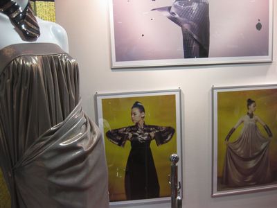 |   ガラスケースに入った作品です。銀色のドレスです。後はペ・ジファンさん撮影の写真です。 |