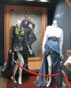 |  なんと、『魅惑の韓服 韓服アート』 YEOBACK展開催中でした。 1960年~70年の韓服をパターンに様々な新しい試みを展開し、完成した韓服、一般的に韓服と聞いて思い浮かびにくい素材(スパンコール、シフォン、レース、ベルベット、コーティング素材など)をふんだんに使い、西洋t劇ナデザイン(ドレープやハイウエストなど)を取り入れ美しい新しいするエットを創り上げた、こだわりの素材と、しるえっとことが、「YEOBACK STYLE」なんだそうです。(パンフレットより) 今年の7月に、ソウルで開かれた展示会に出展された作品が展示してあります。 デザイナーは、パク・ソノクさん、服飾芸術YEOBACK代表兼デザイナーそして、その韓服をモデルが着て、写真を写し一緒に展示してありました。 写真も斬新で美しいです。カメラマンはペ・ジファンさん スタイルインパクトスタジオ代表 |
