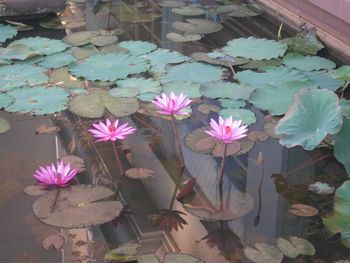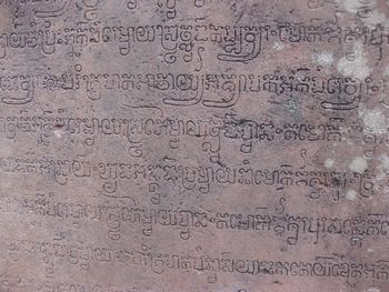 ガルーダのレリーフ、彫が深く、1000年の風雨に耐えてもなお、クッキリとした様には驚かされる。サンスクリット碑文の綴り文字を借りて「古クメール語」が成立する。インド文化のカンボジア的受容です、サンスクリット碑文の綴り字を借りた古クメール語碑刻文が初めて登場するのはアンコール朝以前の西暦611年、ガイドさんも読めません・・・と言った古い文字です。 水蓮が咲いています、こじんまりとしたバンテアイ・スレイ