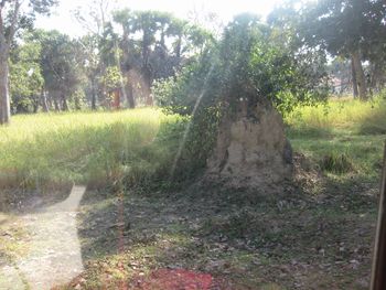 青空に塔が映えます。塔に草が生えている、これもしばしば抜き取り作業をしないと、たちまち草に、やがては木が生い茂ることになる。次の遺跡まで、車で移動、窓外の景色が興味深くて、写真を撮りました。この小山はアリ塚だそうです。大きくて、そして、木まで生えています。 高床式の一般の家です。暑いときは、床下で寝る、雨季は水が溜まる。季節によって、上や下と自在に暮らします。 牛たちも暑さの中、ノンビリと休憩中でしょうか?牛は、痩せていますが、農耕に強いです。水牛は、水が無いと生きていけないのであまりたくさんはいないとか。 こちらは洋服屋さんです。ビニールシートなどを敷いた上に、衣服が山積みされています。 バンテアレイ・サムレイとはサムレイ族の砦という意味で、スールヤ・ヴァルマン2世が12世紀前半に造った寺院でラテライトと砂岩で造られていて周囲は高い掘に囲まれ砦のようになっている。入り口の前で。 入り口を入ると、また入り口がたくさんあります。 また入り口を入ると、塔が建っています。中央祠堂です、 廊下です。透かして見ると、たくさんの入り口が続いています。