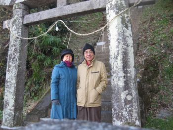 | 少し暖かくなったので、近くの神社に初詣に行きました。二人とも着膨れています。 |  |