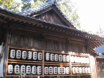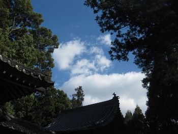 | 住宅地のすぐ側ですが、神社の森という感じで、大きな杉の木も茂り、静かな所です。青空が冴え渡っています。 |  |