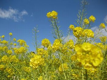 |  | 本当に美しく咲いています。早咲き菜の花です。まだ北風だというのに、こんなに満開で、良い香りを放っています。 |