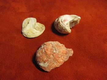 | 貝殻を拾ってみました。可愛いハート型の貝殻、どれも欠けていて、結構波が強く打ち寄せるのでしょうね。 |  |