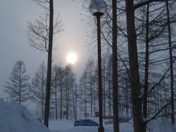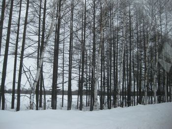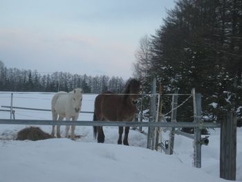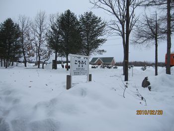 | ありがとう、お世話になります。暖められた車に乗り込んで、家に行くまでに早速、名所めぐりです。先ずは、真っ白の大地、そして、針葉樹の防風林が、珍しくて感動です。 |  |