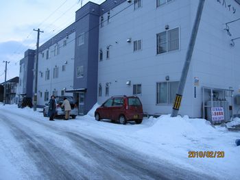 | 弟たちのアパートへ着きました。道路は凍ってツルツルです。滑らないようにしなくては! |  |