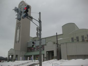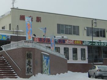 |  | 一度は見たいと思っていた流氷を見られて本当に感激しました。 また車に乗って、網走の町を走ります。ここは網走駅です。縦書きの駅名は珍しいとのことです。 |