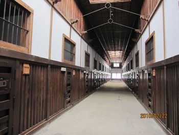 |  | 五翼の建物は雑居房になっている。廊下側の壁はブラインドのように「斜め格子で作られている。 |