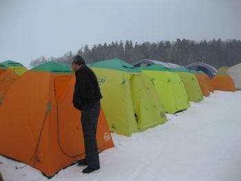 |  | このたくさんのカラフルなテントは、公魚釣りのテントです。中はどうなっているかというと・・・・ |