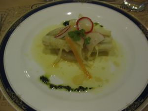 | 団体客が終わってからの遅いディナーでした。その時、レストランに座っていたのは、二組のお客だけ。そして、そのもう一組が、なんと、大分でのお友達一家でした。余りの奇遇に双方、驚いてしまいました。ここ数年お会いしていなかったのに・・・お子様たちも大きく立派になっておられて、本当に愉快な時間となりました。 | ![]() |