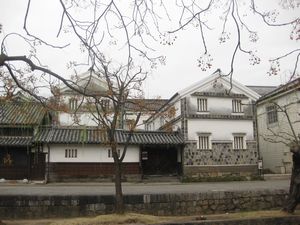 | ホテルを出て、倉敷美観地区を散策しました。、昔天領だった倉敷の街は倉敷川の両側には、柳が芽吹き、白壁土蔵の家々が、往時の盛んな様を思い起こさせます。 この白壁土蔵の建物は倉敷民芸館です。今日は休館日で、見学できないのが残念です。 |