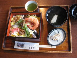 | 今回の旅行最後の食事は、3月一杯行われている「倉敷天領寿司祭り」のパンフレットに載っていた天領寿司を食べました。アナゴやママカリなど、名物を使った寿司でした。 | ![]() |