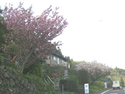 |  | 今日は、久住のお友達の家で、友の会の集まりです。 久し振りのことで、何だかうれしく友達に乗せていただいている車の中でもおしゃべりが弾みます。 山の道に入ると、ソメイヨシノも、ぼたん桜もまだまだきれいに咲いています。 |