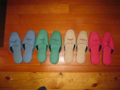 |  | 今日は、台所をお借りして、お料理をします。かわいいスリッパを並べて、準備して下さっていました。 |