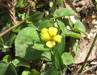 |  | 貴重な久住の黄スミレが、最後の花を咲かせていました。お庭には、たくさん自生しています。 |