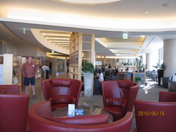 | 大分から福岡空港へ行き、成田へ飛びました。暫く時間があるので、AAのラウンジで休息しました。浮世絵がたくさん展示してあり、ゆったりとした空間は、とても落ち着けました。 | ![]() |