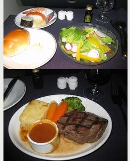 お寿司にサラダ、メインはフィレステーキを選びました。 お肉もとても良い味で、おいしく食べました。 |