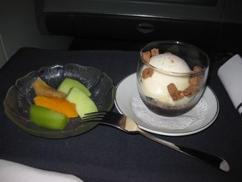| 落ち着くとすぐにディナータイムになりました。 コース料理がペースに合わせてサーブされますし、食器も本物でとても気持ちよく頂きます。 |