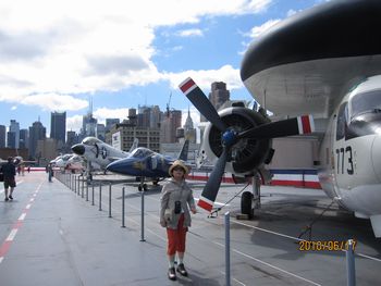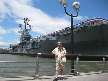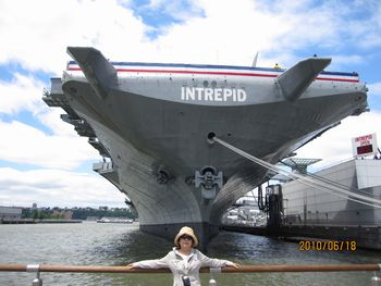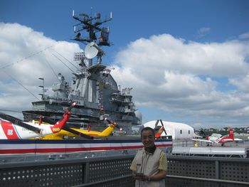 たくさんの展示を見て周り、すっかり疲れました。インテルピットを降りてハドソン川の側を歩きます。実際に空母の前に立ってみるとその巨大さが分かります。 |