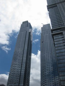 あ~あ、摩天楼の先の青い空、この景色が見たくて、ニューヨークにやってきました。 こんなに細くて高いビル、よく建っているなと思いますが、地震の無い国なので安心なんですね。 |