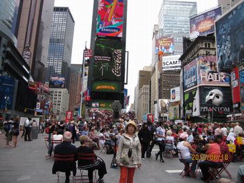 さあ、元気が出てきました。また歩きます。タイムズスクエアにやってきました。大勢の人で、ごった返しています。色々な国の人が居て、世界の観光地です。 |