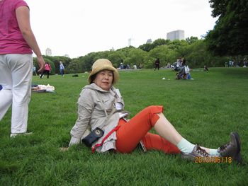広い芝生は大勢の人が思い思いの姿で居ます。赤ちゃんを連れたママさんのグループ、恋人同士、友達同士、本当にのんびりと初夏の午後を楽しんでいます。 |